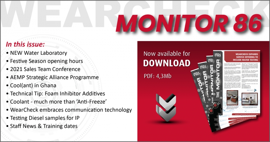 Monitor 86, just hit the shelves! This newsletter is jampacked with useful info – a discussion on additives (foam inhibitors, this time round), our 2022 training course dates and info, an interesting perspective on coolant as well as a warning about IP (illuminating paraffin) contamination in diesel and the effect this has on engines.