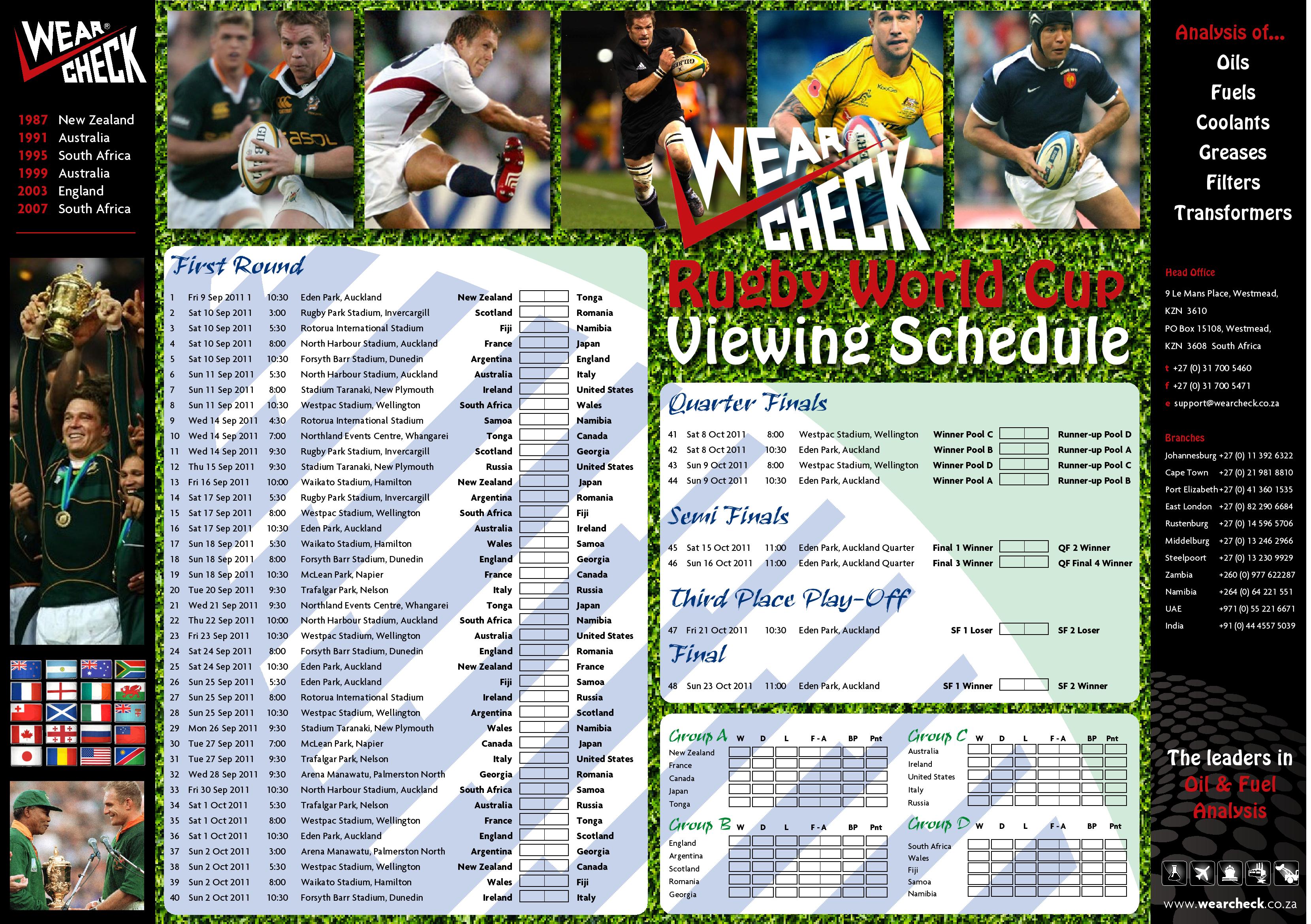 Well, until now, WearCheck has been THE one-stop shop for condition monitoring, reliability solutions and checking the wear on components. And from today, you can also check something else that is critically important - the Rugby World Cup viewing schedule on the WearCheck website!